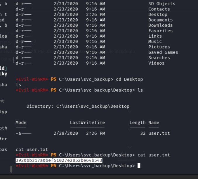 DPAPI: 240339f898b6ac4ce3f34702e4a8955000000000i passed the hashes and got svc on winrm
