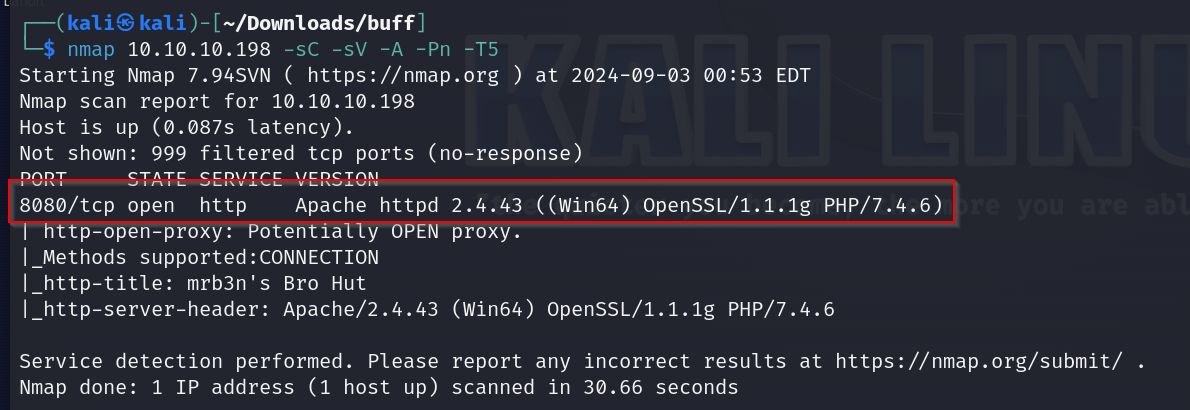now on our kali box we will run this