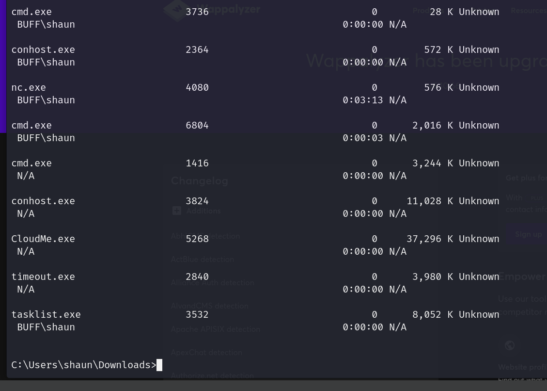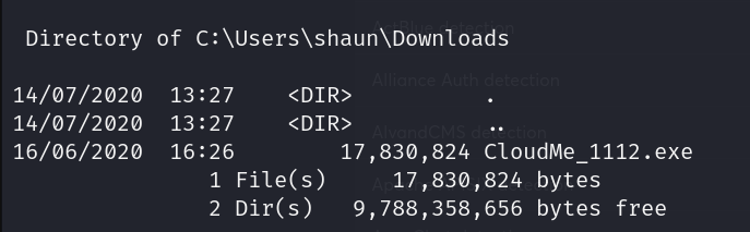 runnign tasklist/v shows us that cloudme is running right now