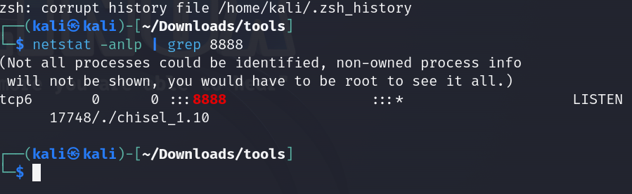 lets use Chisel to portforward our targets port 8888 to our kali machines port 8888