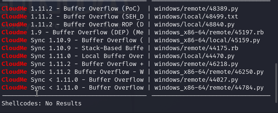 for cloudme we find this exploit