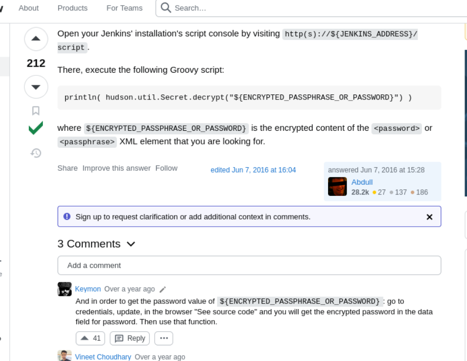 println( hudson.util.Secret.decrypt("${ENCRYPTED_PASSPHRASE_OR_PASSWORD}") ) println( hudson.util.Secret.decrypt("{AQAAABAAAAowLrfCrZx9baWliwrtCiwCyztaYVoYdkPrn5qEEYDqj5frZLuo4qcqH61hjEUdZtkPiX6buY1J4YKYFziwyFA1wH/X5XHjUb8lUYkf/XSuDhR5tIpVWwkk7l1FTYwQQl/i5MOTww3b1QNzIAIv41KLKDgsq4WUAS5RBt4OZ7v410VZgdVDDciihmdDmqdsiGUOFubePU9a4tQoED2uUHAWbPlduIXaAfDs77evLh98/INI8o/A+rlX6ehT0K40cD3NBEF/4Adl6BOQ/NSWquI5xTmmEBi3NqpWWttJl1q9soOzFV0C4mhQiGIYr8TPDbpdRfsgjGNKTzIpjPPmRr+j5ym5noOP/LVw09+AoEYvzrVKlN7MWYOoUSqD+C9iXGxTgxSLWdIeCALzz9GHuN7a1tYIClFHT1WQpa42EqfqcoB12dkP74EQ8JL4RrxgjgEVeD4stcmtUOFqXU/gezb/oh0Rko9tumajwLpQrLxbAycC6xgOuk/leKf1gkDOEmraO7uiy2QBIihQbMKt5Ls+l+FLlqlcY4lPD+3Qwki5UfNHxQckFVWJQA0zfGvkRpyew2K6OSoLjpnSrwUWCx/hMGtvvoHApudWsGz4esi3kfkJ+I/j4MbLCakYjfDRLVtrHXgzWkZG/Ao+7qFdcQbimVgROrncCwy1dwU5wtUEeyTlFRbjxXtIwrYIx94+0thX8n74WI1HO/3rix6a4FcUROyjRE9m//dGnigKtdFdIjqkGkK0PNCFpcgw9KcafUyLe4lXksAjf/MU4v1yqbhX0Fl4Q3u2IWTKl+xv2FUUmXxOEzAQ2KtXvcyQLA9BXmqC0VWKNpqw1GAfQWKPen8g/zYT7TFA9kpYlAzjsf6Lrk4Cflaa9xR7l4pSgvBJYOeuQ8x2Xfh+AitJ6AMO7K8o36iwQVZ8+p/I7IGPDQHHMZvobRBZ92QGPcq0BDqUpPQqmRMZc3wN63vCMxzABeqqg9QO2J6jqlKUgpuzHD27L9REOfYbsi/uM3ELI7NdO90DmrBNp2y0AmOBxOc9e9OrOoc+Tx2K0JlEPIJSCBBOm0kMr5H4EXQsu9CvTSb/Gd3xmrk+rCFJx3UJ6yzjcmAHBNIolWvSxSi7wZrQl4OWuxagsG10YbxHzjqgoKTaOVSv0mtiiltO/NSOrucozJFUCp7p8v73ywR6tTuR6kmyTGjhKqAKoybMWq4geDOM/6nMTJP1Z9mA+778Wgc7EYpwJQlmKnrk0bfO8rEdhrrJoJ7a4No2FDridFt68HNqAATBnoZrlCzELhvCicvLgNur+ZhjEqDnsIW94bL5hRWANdV4YzBtFxCW29LJ6/LtTSw9LE2to3i1sexiLP8y9FxamoWPWRDxgn9lv9ktcoMhmA72icQAFfWNSpieB8Y7TQOYBhcxpS2M3mRJtzUbe4Wx+MjrJLbZSsf/Z1bxETbd4dh4ub7QWNcVxLZWPvTGix+JClnn/oiMeFHOFazmYLjJG6pTUstU6PJXu3t4Yktg8Z6tk8ev9QVoPNq/XmZY2h5MgCoc/T0D6iRR2X249+9lTU5Ppm8BvnNHAQ31Pzx178G3IO+ziC2DfTcT++SAUS/VR9T3TnBeMQFsv9GKlYjvgKTd6Rx+oX+D2sN1WKWHLp85g6DsufByTC3o/OZGSnjUmDpMAs6wg0Z3bYcxzrTcj9pnR3jcywwPCGkjpS03ZmEDtuU0XUthrs7EZzqCxELqf9aQWbpUswN8nVLPzqAGbBMQQJHPmS4FSjHXvgFHNtWjeg0yRgf7cVaD0aQXDzTZeWm3dcLomYJe2xfrKNLkbA/t3le35+bHOSe/p7PrbvOv/jlxBenvQY+2GGoCHs7SWOoaYjGNd7QXUomZxK6l7vmwGoJi+R/D+ujAB1/5JcrH8fI0mP8Z+ZoJrziMF2bhpR1vcOSiDq0+Bpk7yb8AIikCDOW5XlXqnX7C+I6mNOnyGtuanEhiJSFVqQ3R+MrGbMwRzzQmtfQ5G34m67Gvzl1IQMHyQvwFeFtx4GHRlmlQGBXEGLz6H1Vi5jPuM2AVNMCNCak45l/9PltdJrz+Uq/d+LXcnYfKagEN39ekTPpkQrCV+P0S65y4l1VFE1mX45CR4QvxalZA4qjJqTnZP4s/YD1Ix+XfcJDpKpksvCnN5/ubVJzBKLEHSOoKwiyNHEwdkD9j8Dg9y88G8xrc7jr+ZcZtHSJRlK1o+VaeNOSeQut3iZjmpy0Ko1ZiC8gFsVJg8nWLCat10cp+xTy+fJ1VyIMHxUWrZu+duVApFYpl6ji8A4bUxkroMMgyPdQU8rjJwhMGEP7TcWQ4Uw2s6xoQ7nRGOUuLH4QflOqzC6ref7n33gsz18XASxjBg6eUIw9Z9s5lZyDH1SZO4jI25B+GgZjbe7UYoAX13MnVMstYKOxKnaig2Rnbl9NsGgnVuTDlAgSO2pclPnxj1gCBS+bsxewgm6cNR18/ZT4ZT+YT1+uk5Q3O4tBF6z/M67mRdQqQqWRfgA5x0AEJvAEb2dftvR98ho8cRMVw/0S3T60reiB/OoYrt/IhWOcvIoo4M92eo5CduZnajt4onOCTC13kMqTwdqC36cDxuX5aDD0Ee92ODaaLxTfZ1Id4ukCrscaoOZtCMxncK9uv06kWpYZPMUasVQLEdDW+DixC2EnXT56IELG5xj3/1nqnieMhavTt5yipvfNJfbFMqjHjHBlDY/MCkU89l6p/xk6JMH+9SWaFlTkjwshZDA/oO/E9Pump5GkqMIw3V/7O1fRO/dR/Rq3RdCtmdb3bWQKIxdYSBlXgBLnVC7O90Tf12P0+DMQ1UrT7PcGF22dqAe6VfTH8wFqmDqidhEdKiZYIFfOhe9+u3O0XPZldMzaSLjj8ZZy5hGCPaRS613b7MZ8JjqaFGWZUzurecXUiXiUg0M9/1WyECyRq6FcfZtza+q5t94IPnyPTqmUYTmZ9wZgmhoxUjWm2AenjkkRDzIEhzyXRiX4/vD0QTWfYFryunYPSrGzIp3FhIOcxqmlJQ2SgsgTStzFZz47Yj/ZV61DMdr95eCo+bkfdijnBa5SsGRUdjafeU5hqZM1vTxRLU1G7Rr/yxmmA5mAHGeIXHTWRHYSWn9gonoSBFAAXvj0bZjTeNBAmU8eh6RI6pdapVLeQ0tEiwOu4vB/7mgxJrVfFWbN6w8AMrJBdrFzjENnvcq0qmmNugMAIict6hK48438fb+BX+E3y8YUN+LnbLsoxTRVFH/NFpuaw+iZvUPm0hDfdxD9JIL6FFpaodsmlksTPz366bcOcNONXSxuD0fJ5+WVvReTFdi+agF+sF2jkOhGTjc7pGAg2zl10O84PzXW1TkN2yD9YHgo9xYa8E2k6pYSpVxxYlRogfz9exupYVievBPkQnKo1Qoi15+eunzHKrxm3WQssFMcYCdYHlJtWCbgrKChsFys4oUE7iW0YQ0MsAdcg/hWuBX878aR+/3HsHaB1OTIcTxtaaMR8IMMaKSM=}") )boom we have this