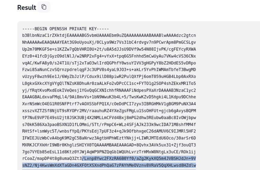 -----END OPENSSH PRIVATE KEY-----lets use this and ssh as root