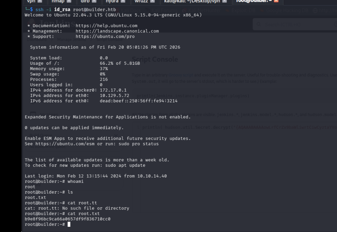 old jenkins interface got creds with hydra and LFI that exposed creds under users.xml, grabbed root ssh key and decrypted it with the CLI.