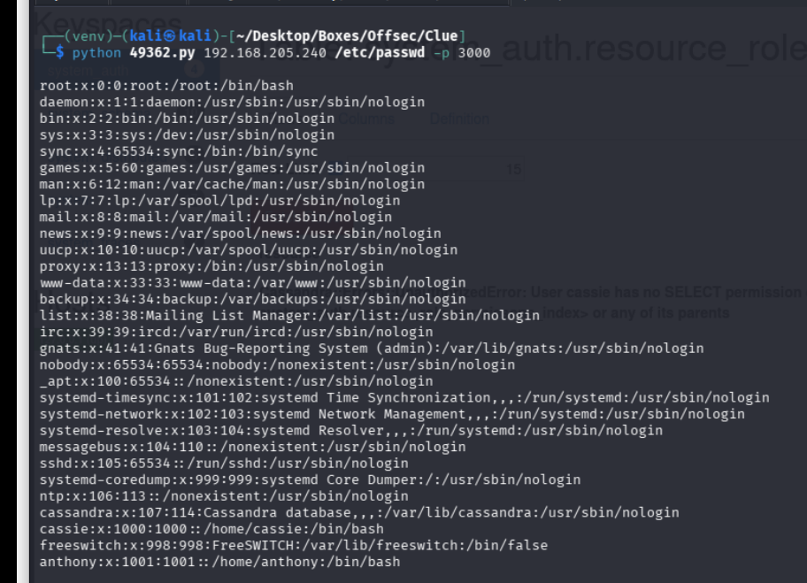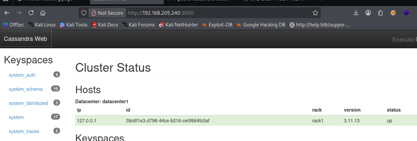 so i used searchsploit and came across a read file exploit for cassandra web, and guessed yo this might let us read that config file for the password, and here we are