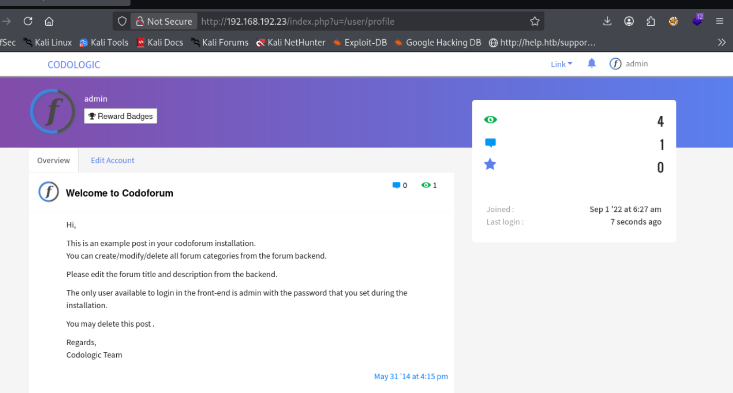 admin admin default creds worked lmaooo