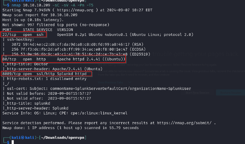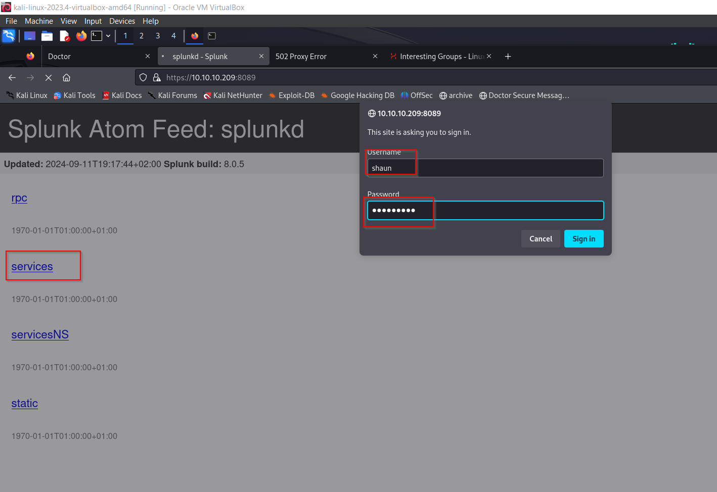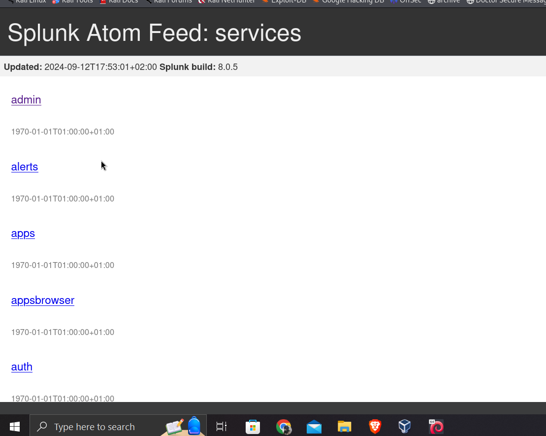 remember we had come across a splunk page on port 8089 before? lets visit that now
