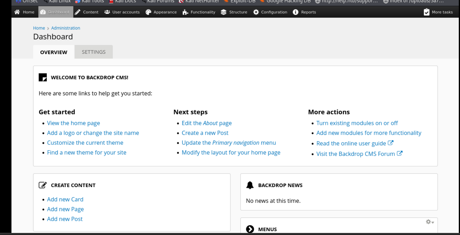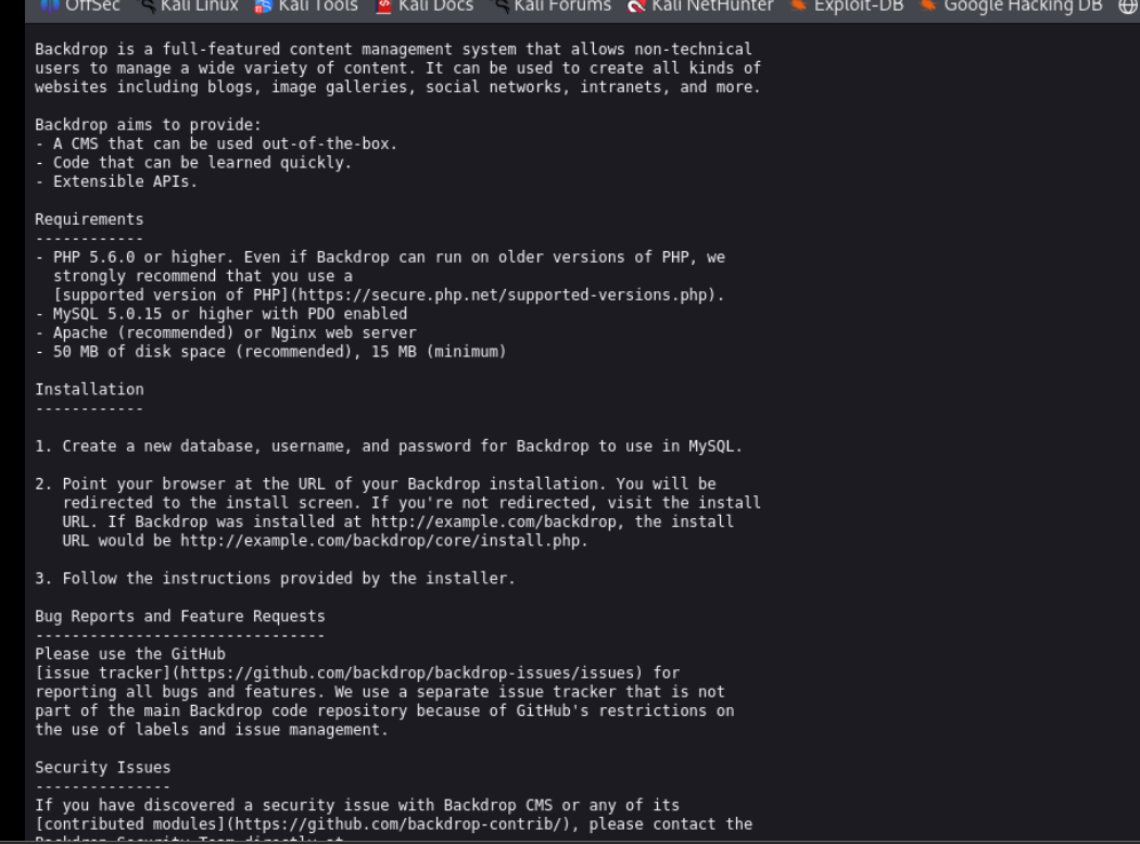 https://grimthereaperteam.medium.com/backdrop-cms-1-22-0-unrestricted-file-upload-layouts-ce49a6b7e521 kali ( found out it is actually 1.27.1 instead by looking at the testing folder lol )