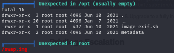 apparently there is a cron job running image-exif.sh and a file in the root directory called swap.img