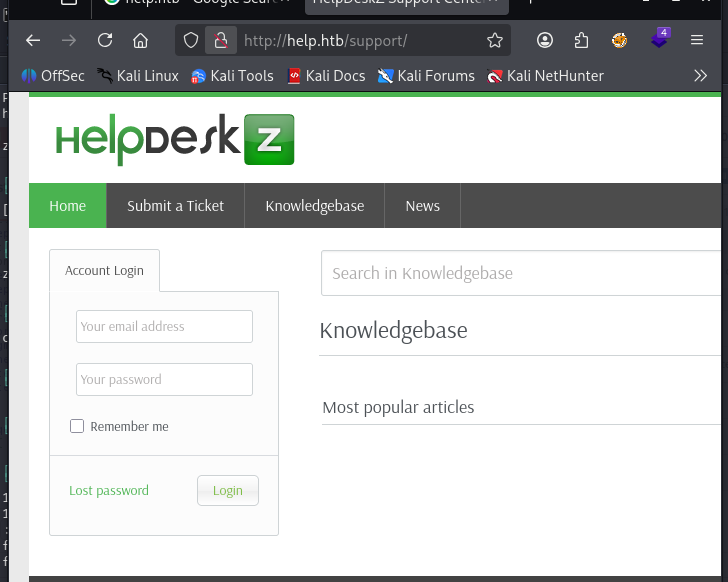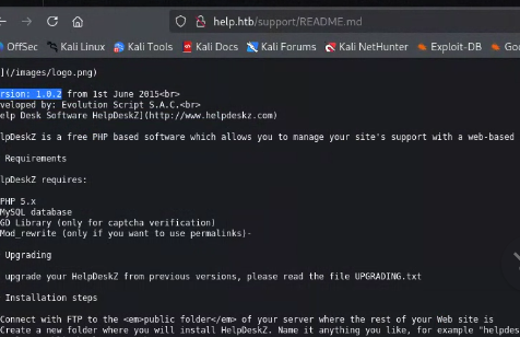 we find the helpdeskz version from the readme directory we got by brute forcing