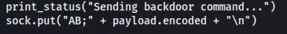 ok so on inspecting the backdoor vulnerability we found earlier, we notice that the way the exploit worksis by starting off the payload with AB in the string , this makes it so that the pc that we are attacking recognizes it is a system command, this could lead us to a rev shell so lets try it out