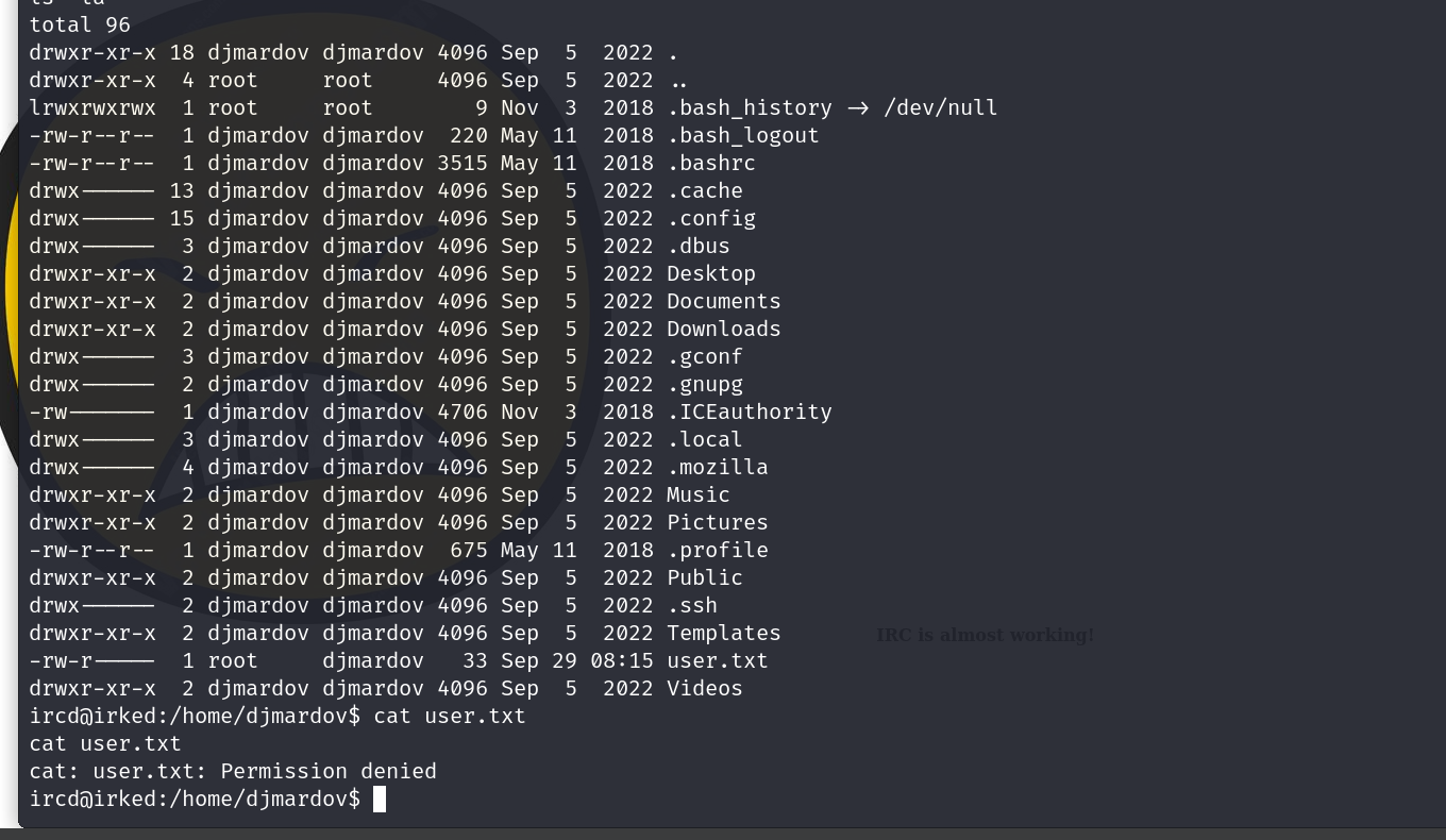 we dont have the perms to view the user flag so lets do some priv esc