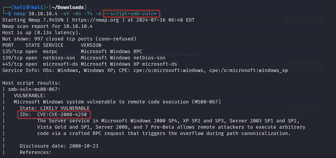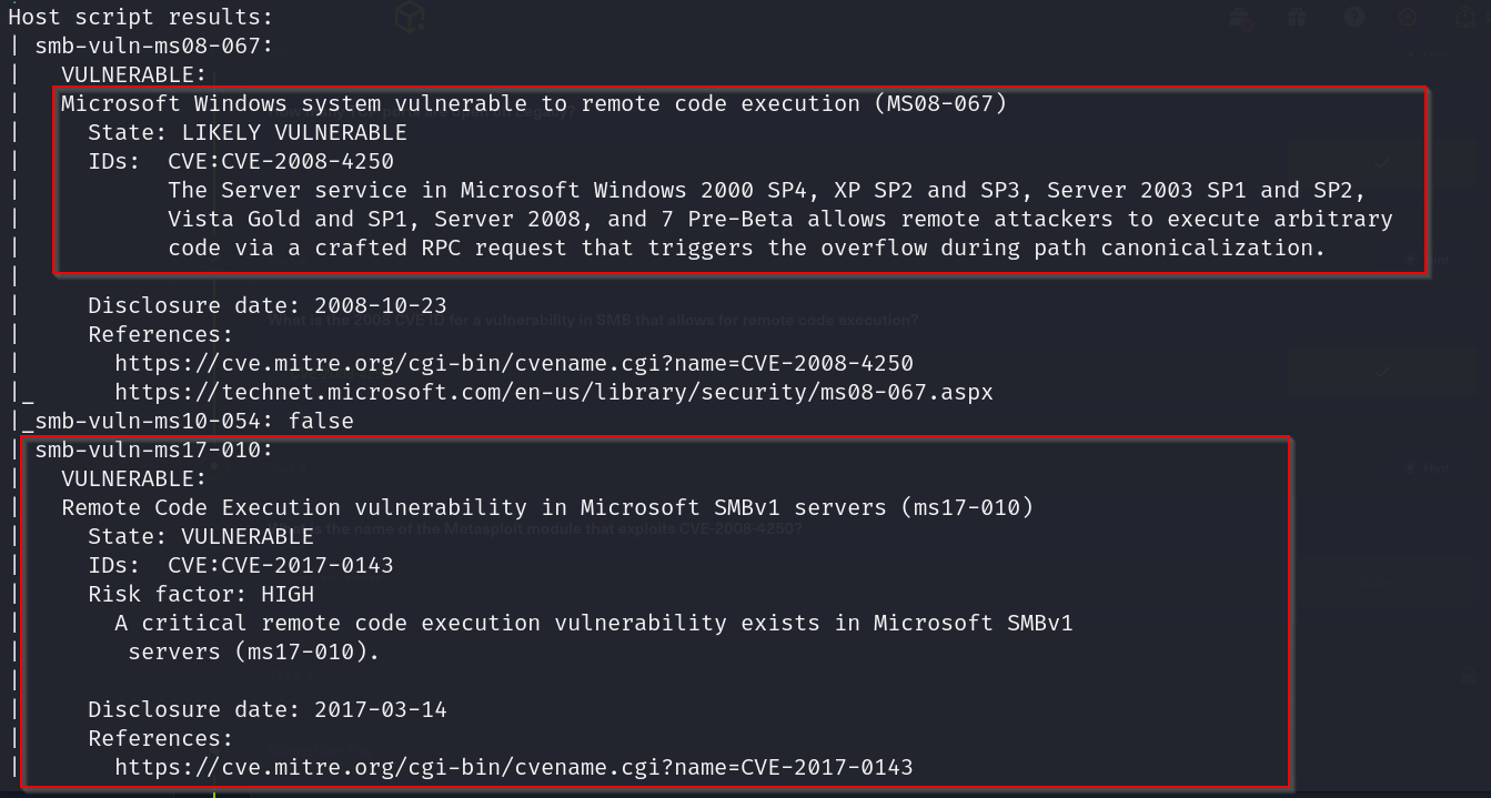 Checking for existing smb vulnerabilities