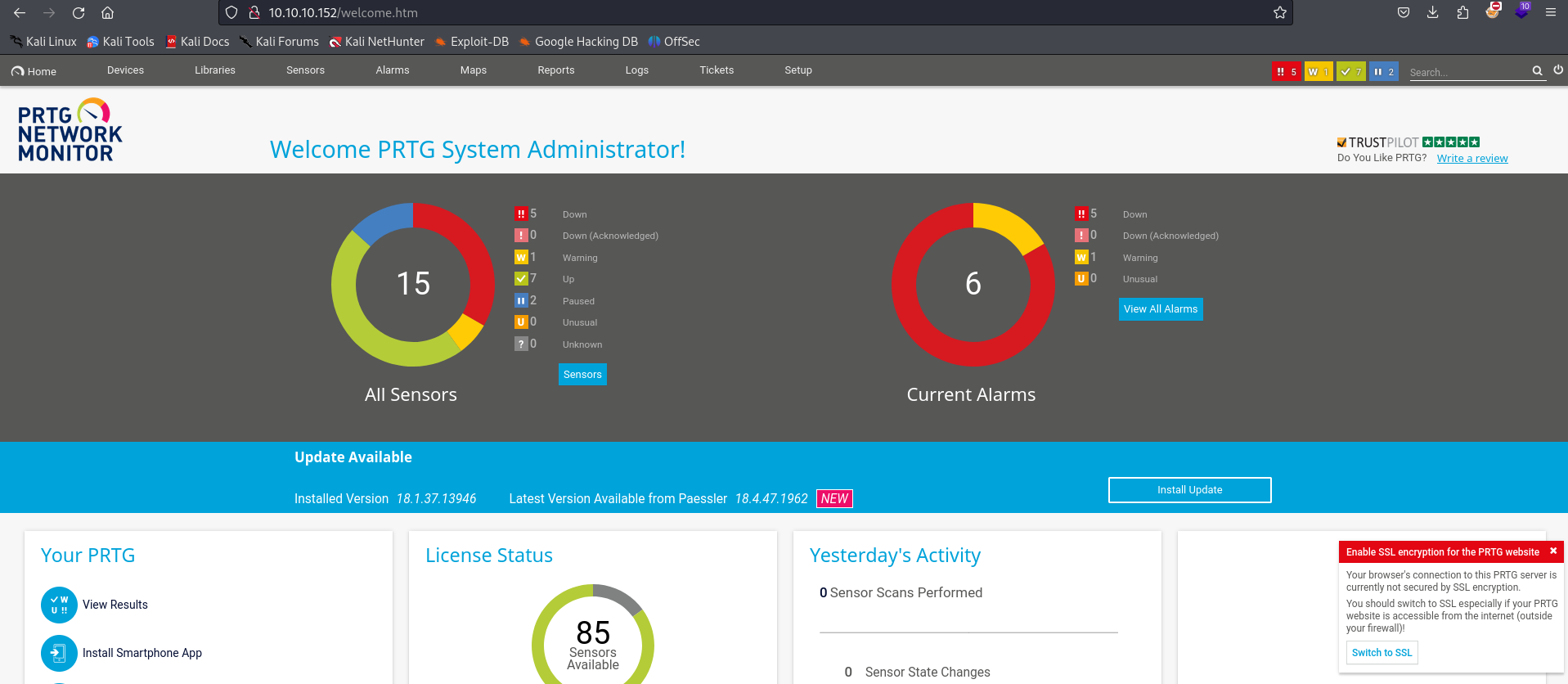annnd we are in , now lets check for any vulnerabilities for this version of prtg network monitor.
