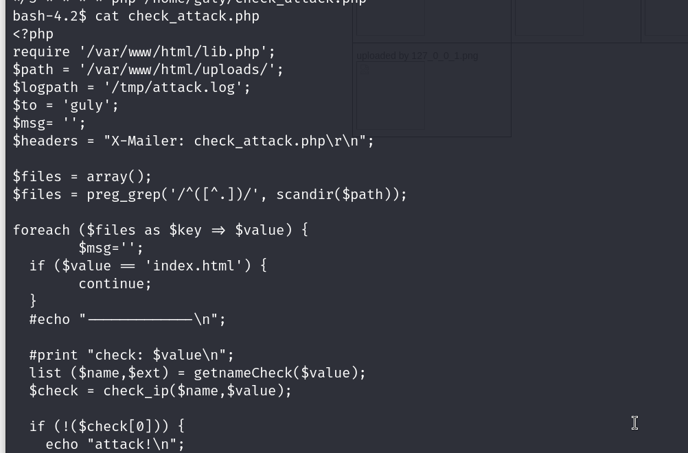 ok so this basically executes any php file that is in the uploads dir, nd checks if it is a potential attack or not