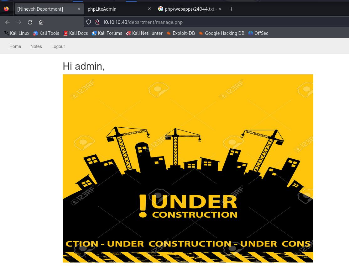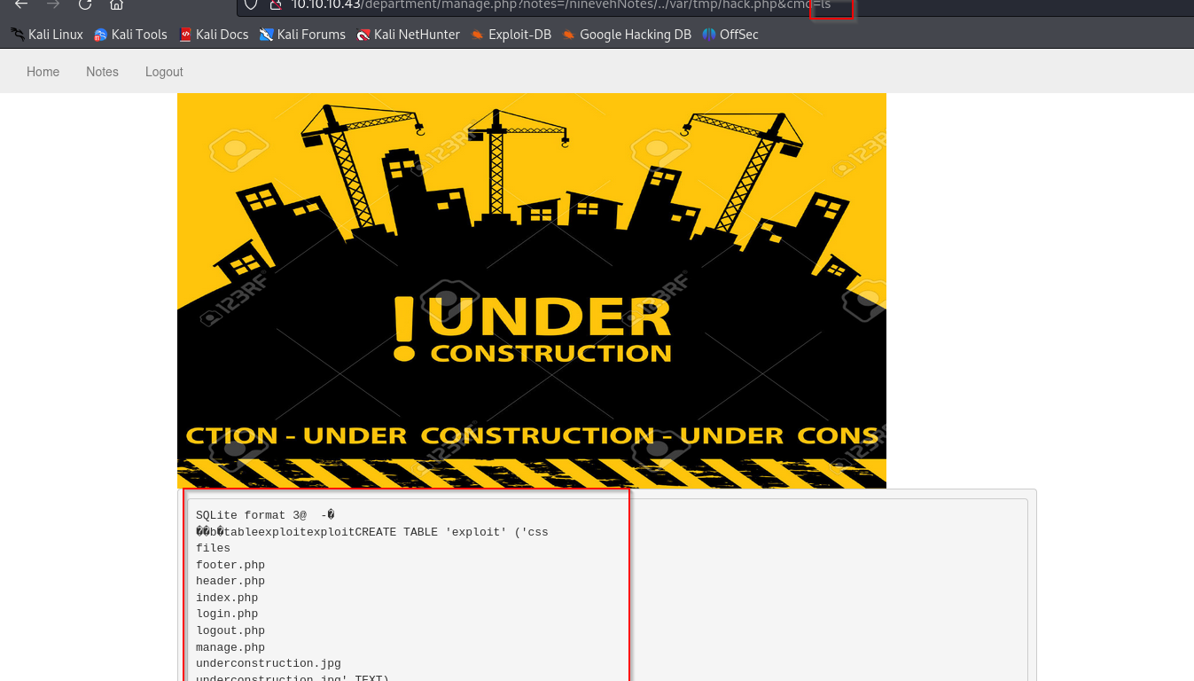 with this we can infer that as long as nineveh notes is there in the parameter we can access anyhing , lets try to access the shell we created before