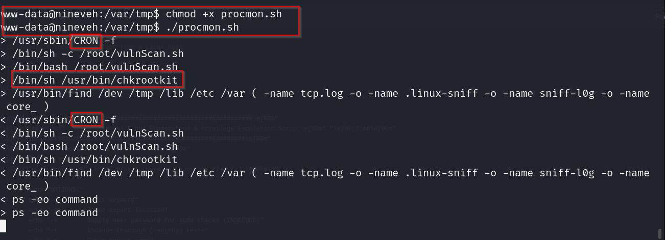 donenow we do chmod +x/procmon.sh followed by ./procmon.sh to run the script
