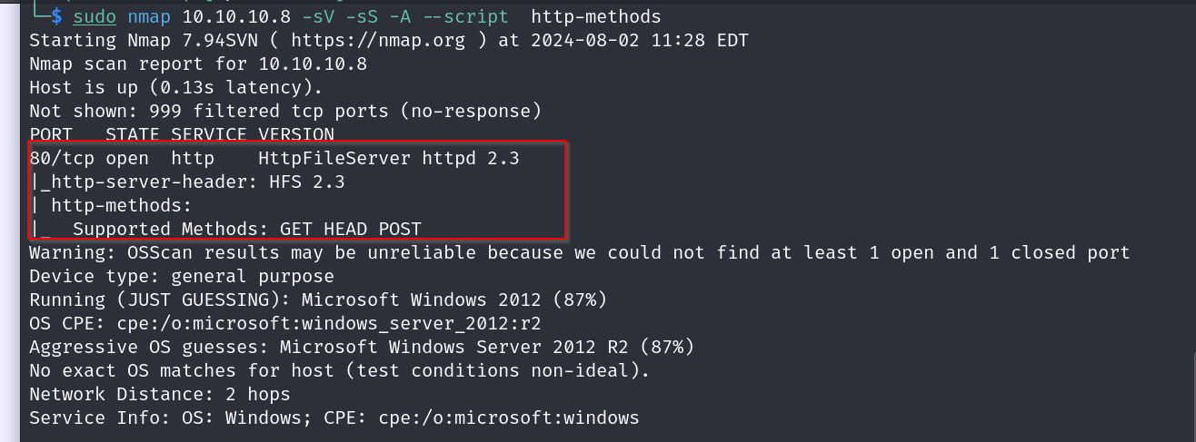 Nmap scan results