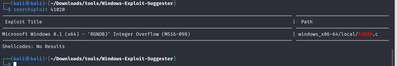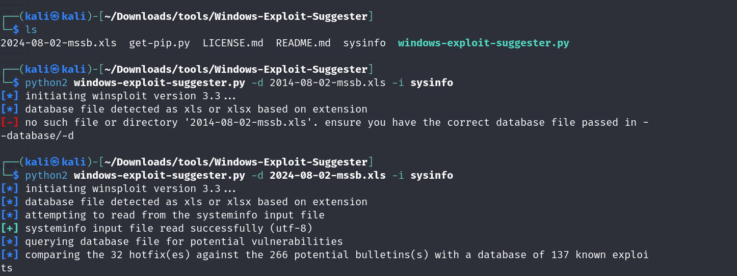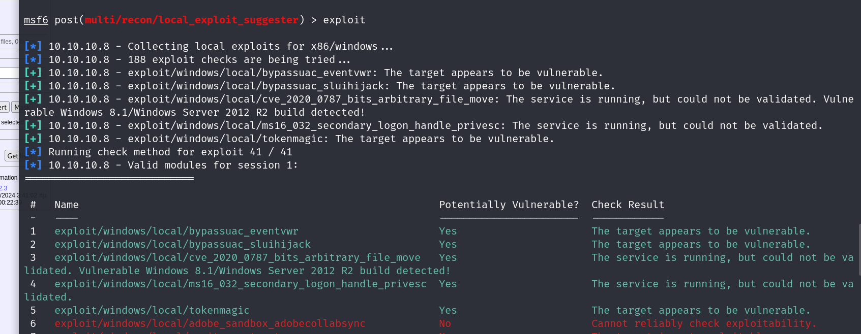 running the local windows exploit suggester