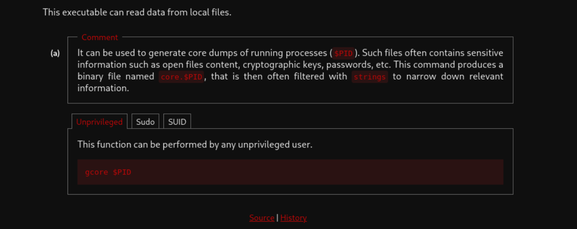 gcore, lets check it out on gtfo bins