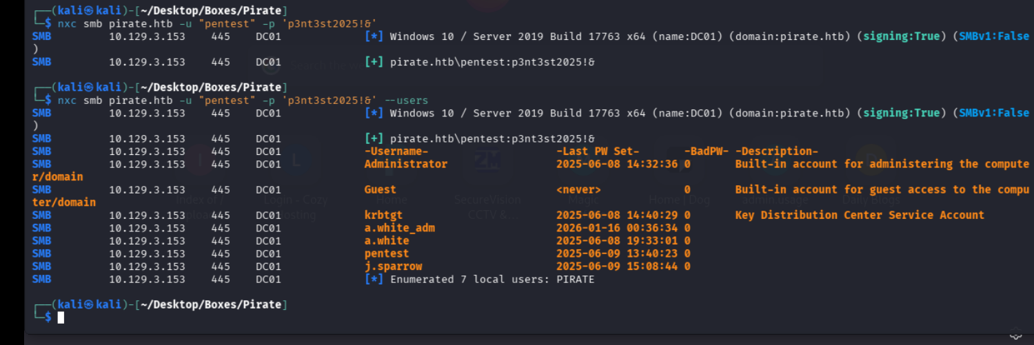*] sAMAccountName: a.white_adm, memberOf: CN=IT,CN=Users,DC=pirate,DC=htb, pwdLastSet: 2026-01-15 19:36:34.388000, lastLogon: 2025-06-09 12:03:37.380258