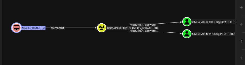 LDAP 10.129.3.153 389 DC01 [*] sAMAccountName: gMSA_ADFS_prod$, memberOf: CN=Remote Management Users,CN=Builtin,DC=pirate,DC=htb, pwdLastSet: 2025-06-09 10:48:41.108220, lastLogon: 2026-03-08 22:07:52.081087