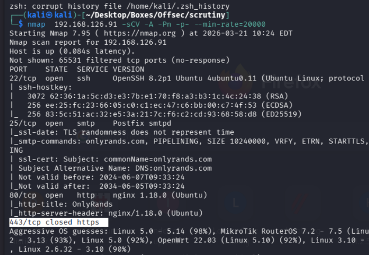 Nmap was my starting point here, and the service/version clues below shaped the next checks.