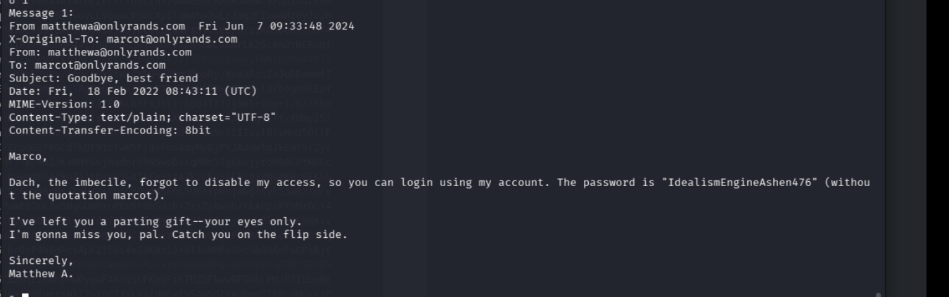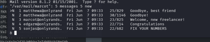 RCE and then privesc with mail and exposed creds.