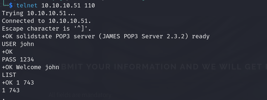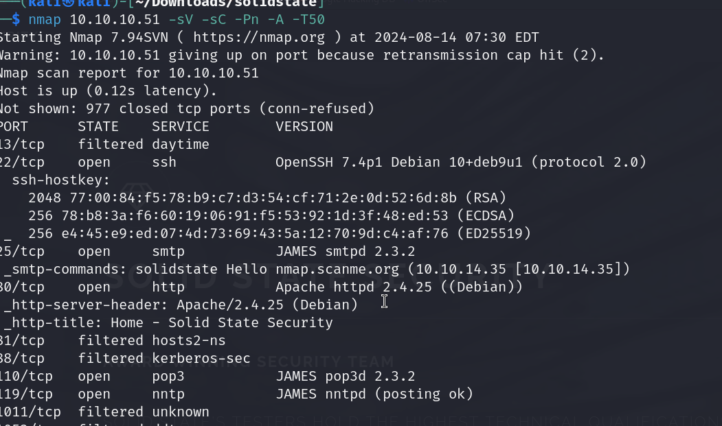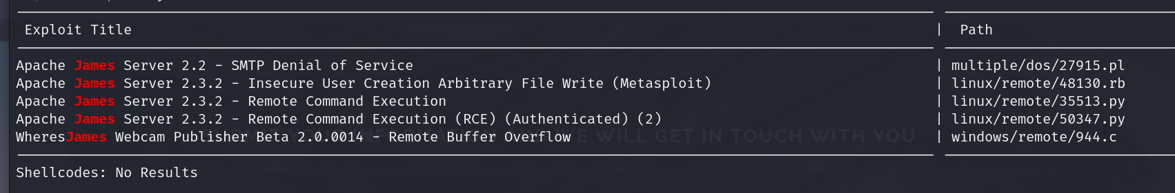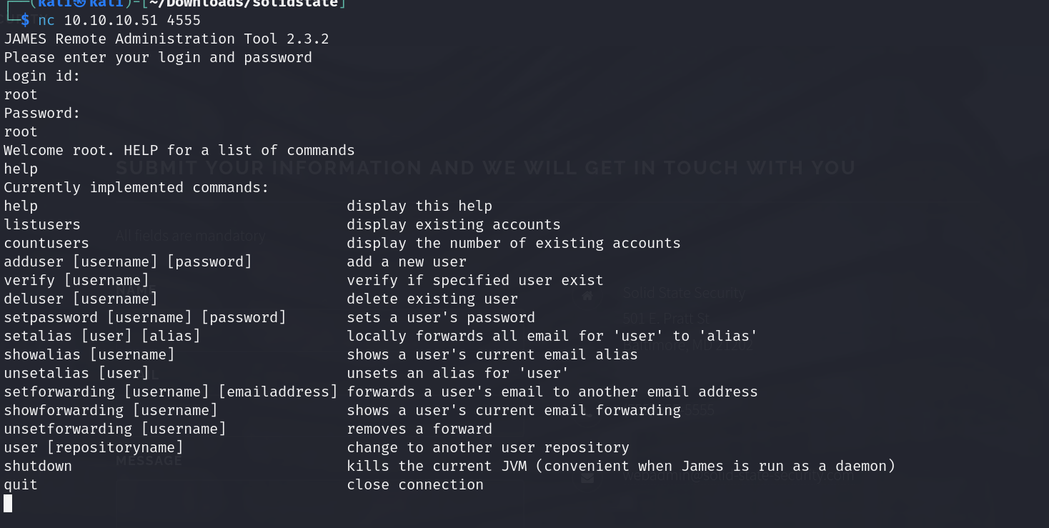 TCP port 4555 is interesting because it is the James administration port. Even without an exploit, if I can access this service, I can likely get into things that might be useful. - 0xdf