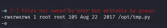 this file is pretty interesting , it has root permissions but is writeable to the user